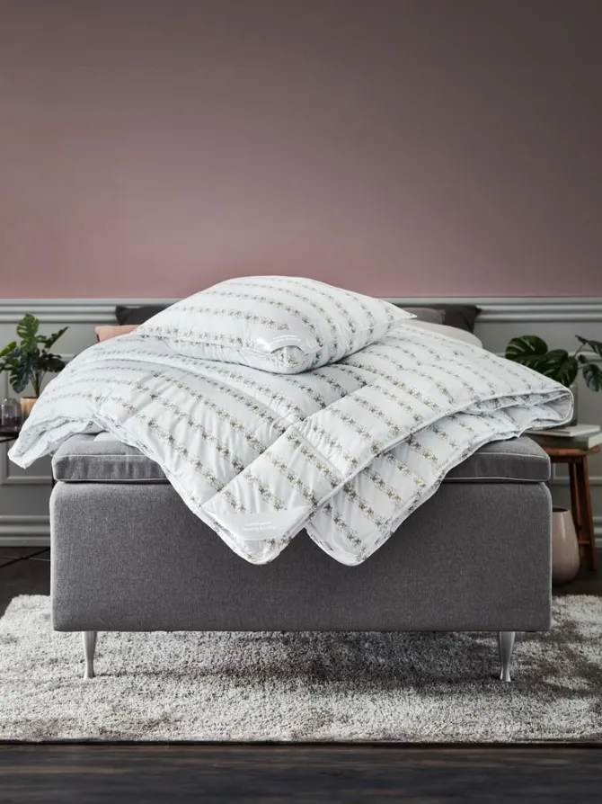 Praktisk 4-season dyne 135×200 cm der består af 2 sammenknappede dyner. De 2 dyner kan bruges sammenknappet og hver for sig alt efter årstid. Unikt dunlignende fyld af silikoniserede fiberdun (100% genanvendt), 500/800 g. De bløde, lette fiberdun bevarer deres volumen og isoleringsevne. Blødt bolster i 100% bomuldscambric. Vask 60°C. Inkl. opbevaringstaske.