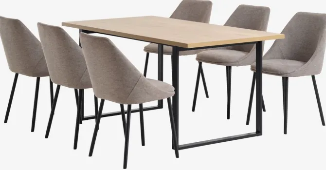 AABENRAA L160 bord eg + 4 VELLEV stole sand/sort
