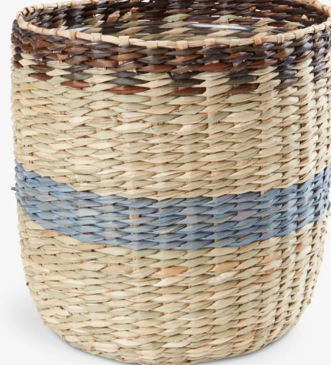 Vævet blomsterpotte lavet af søgræs med naturlige og brune detaljer samt en blå stribe. Denne blomsterpotte kan også bruges som en opbevaringskurv til småting. Søgræs er et hurtigt voksende vandplante, som høstes, tørres og bruges som et naturligt fletmateriale. Ø15 x H15 cm