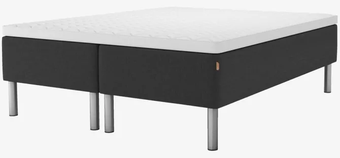 Dobbeltfjedrede boxmadrasser 180×200 cm med 7 komfortzoner, hvilket giver en unik, ergonomisk korrekt støtte. For at imødekomme individuelle behov kommer de to boxmadrasser med forskellige niveauer af fasthed. Den ene madras er med multipocket-fjedre 500/m² og minibonell-fjedre 150/m². Den anden madras er med pocket-fjedre 250/m² og minibonell-fjedre 150/m². Polstret med koldskum og purskum. Inkl. 8 cm tyk topmadras med kerne af trykaflastende memory foam, der former sig præcist efter kroppen. Vaskbart strækbetræk med blød, kraftig quiltning. Ekskl. ben.