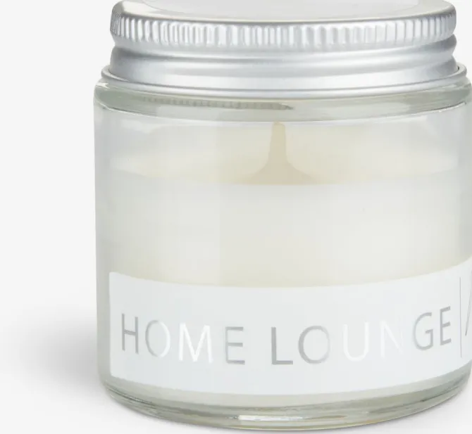 Hvidt duftlys i glasbeholder med låg. Dette parfumerede stearinlys skaber en hyggelig atmosfære med en brændetid på op til 14 timer. Perfekt til indendørs brug. Ø6 x H6 cm
