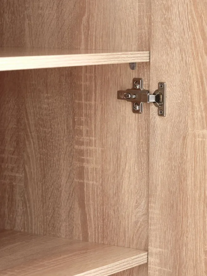 Kunstfiner. Skabets indretning: 3 hylder og 1 bøjlestang. B97 x H176 x D50 cm