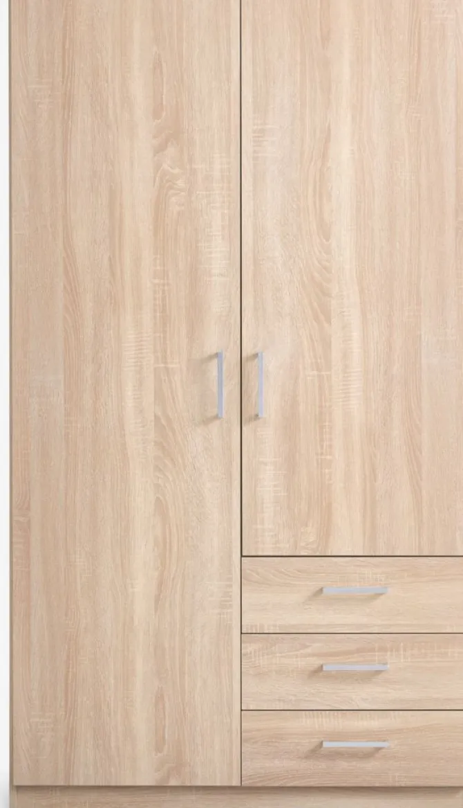 Garderobeskab FANDRUP 97×176 2 låger 3 skuffer lys egefarve