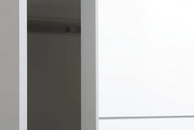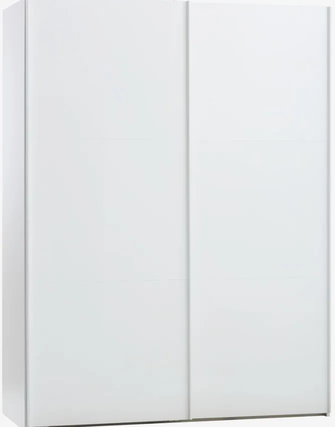 Højglans. Med skydedøre. Skabets indretning: 2 hylder og 2 bøjlestænger. B151 x H201 x D66 cm