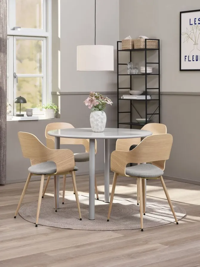 HANSTED Ø100 bord grå + 4 HVIDOVRE stole lys eg