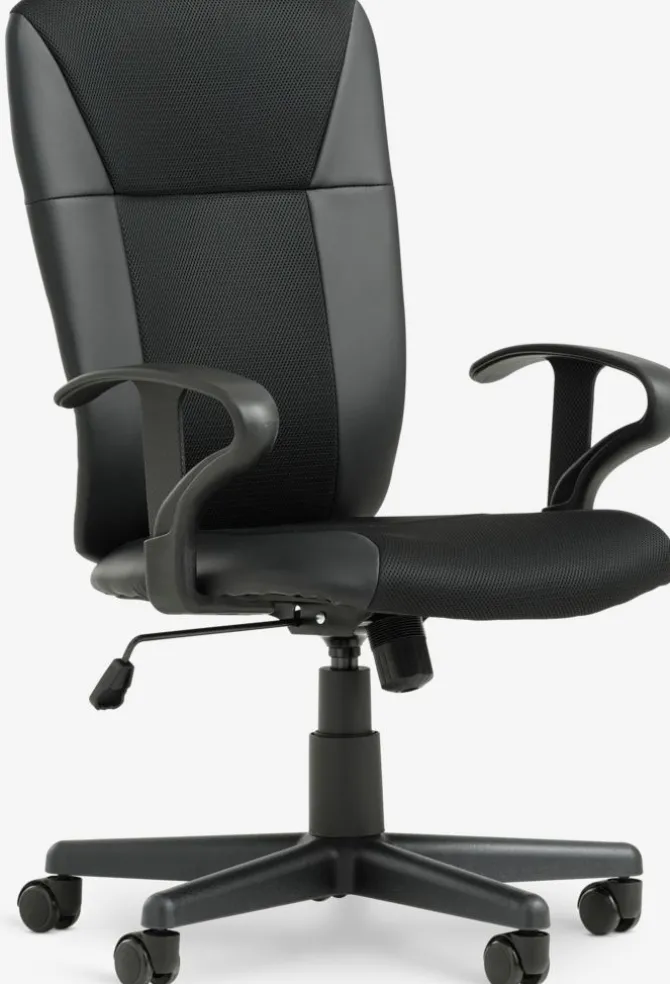 Kunstlæder og mesh. Med justerbar højde og trinløs vippefunktion. B62 x H95-105 x D59 cm