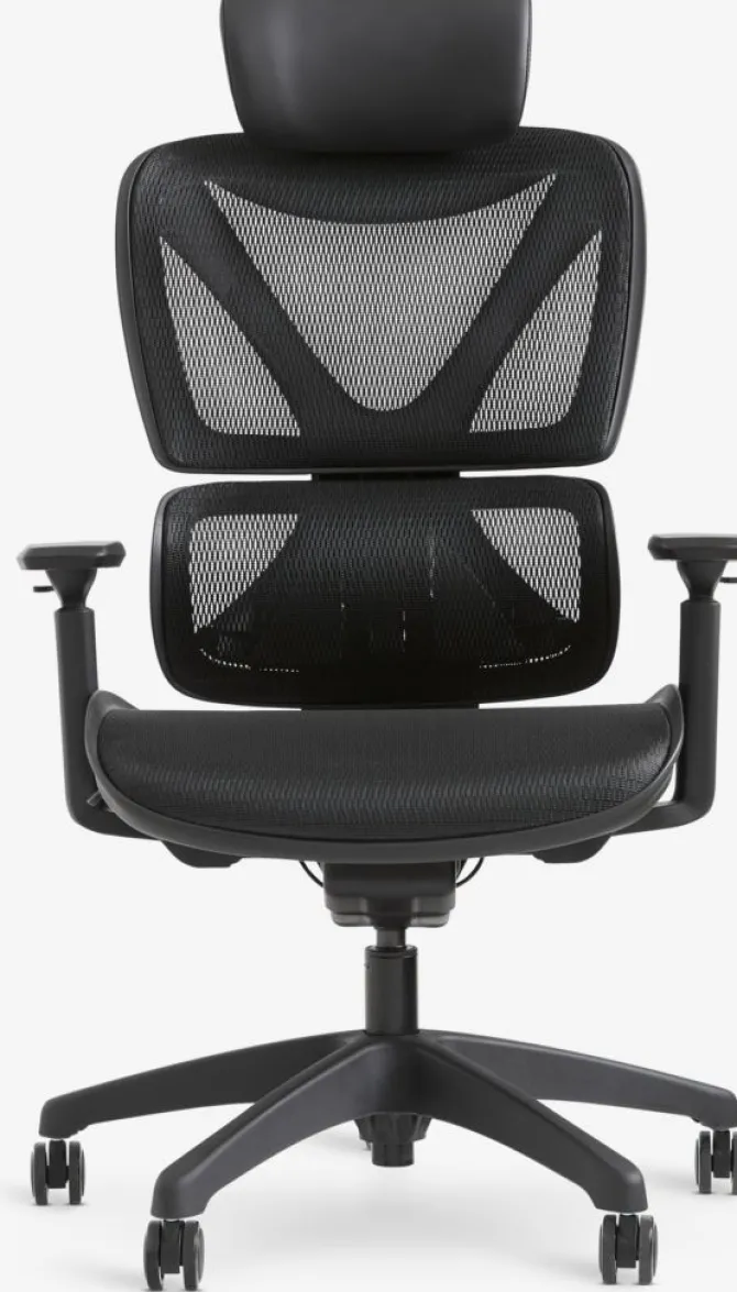 Mesh. Med justerbar nakkestøtte, justerbare armlæn og justerbar højde. B72 x H116-126 x D77 cm
