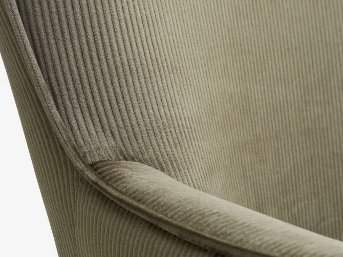 Fløjlsstof. Sæde- og ryghynder i skum. Ben i stål. B72 x H98 x D80 cm