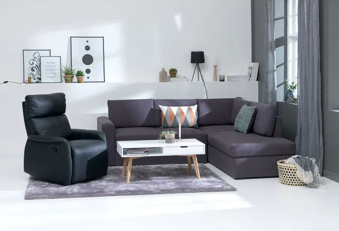 Kunstlæder. Sæde- og ryghynder i skum. Med trinløs vippefunktion og indbygget benstøtte. B76 x H105 x D92 cm