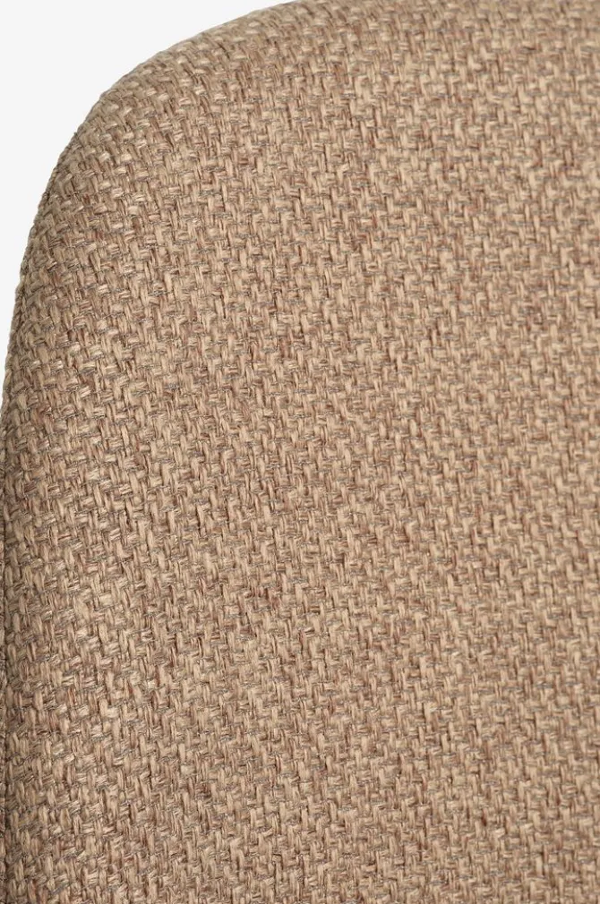 Bord: Massivt træ og egefiner. Ø110 x H75 cm. Inkl. 2 tillægsplader. Udtrukket mål B110 x L200 x H75 cm. Stol: Stof og stål.