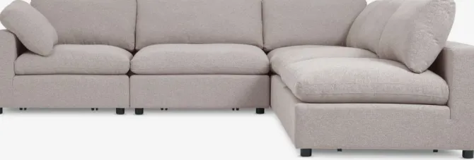 Modulsofa med 5 moduler, som kan tilpasses til netop dit rum. 3 midtermoduler og 2 hjørne-/endemoduler: Stof. Sæde- og ryghynder i skum.