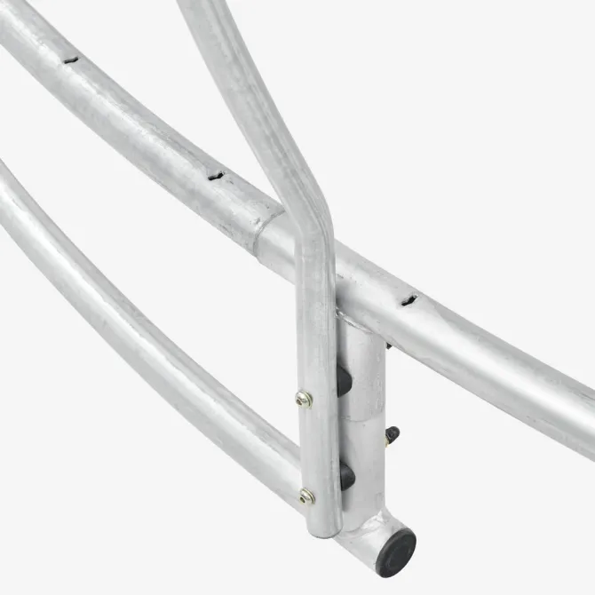 Nedgravet trampolin med maks. personvægt 150 kg. Kun til udendørs og privat brug. Ø396 x H206 cm