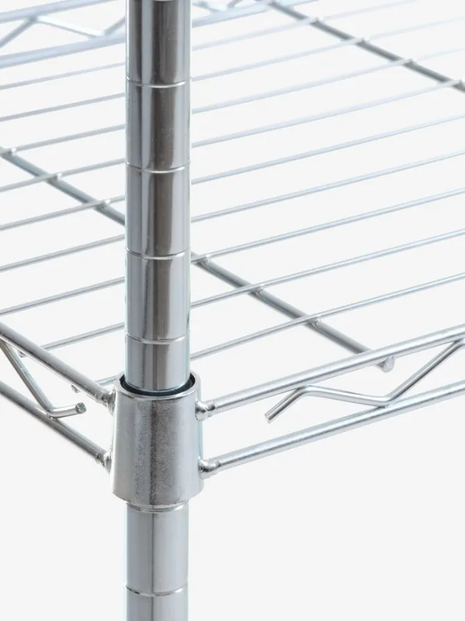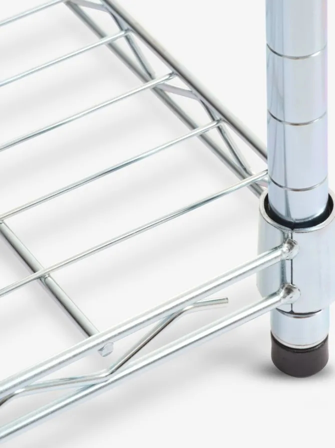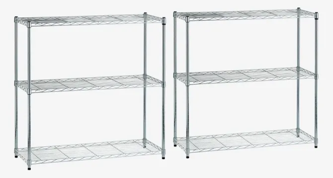 Krom. Reolen kan opdeles i 2 separate enheder. Hylderne kan placeres efter ønske. B90 x H180 x D36 cm