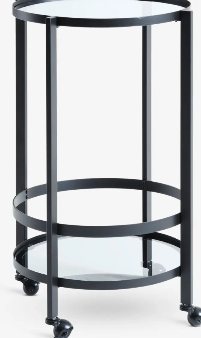 Rullebord SORTEBRO 2 hylder sort/glas