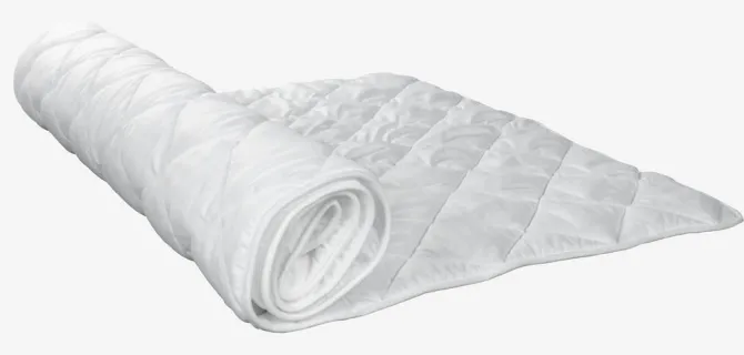 Vaskbar rullemadras 80/90×200 cm med let quiltning af silikoniserede polyesterfibre (100% genanvendt). Blødt bolster i 100% polyestermikrofiber (100% genanvendt). Elastiske stropper i hjørnerne.