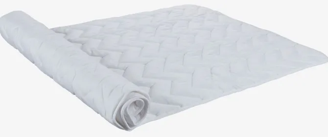 Vaskbar rullemadras 80×200 cm med kraftig quiltning af silikoniserede hulfibre (100% genanvendt). Blødt bolster i 100% polyestermikrofiber (100% genanvendt). Elastiske stropper i hjørnerne.