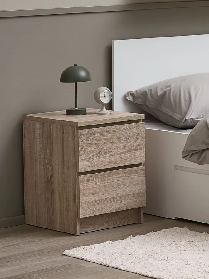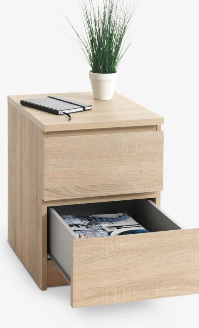 Sengebord LIMFJORDEN 2 skuffer lys egefarve