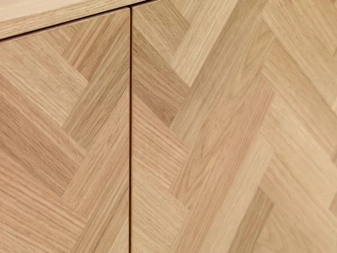 Massivt træ og egefiner. B160 x H82 x D42 cm