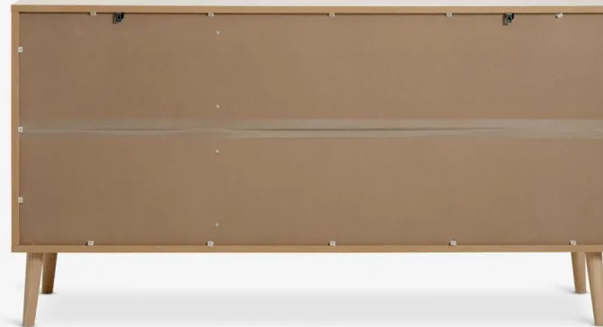 Massivt træ og kunstfiner. Låger med soft-close. B155 x H84 x D42 cm