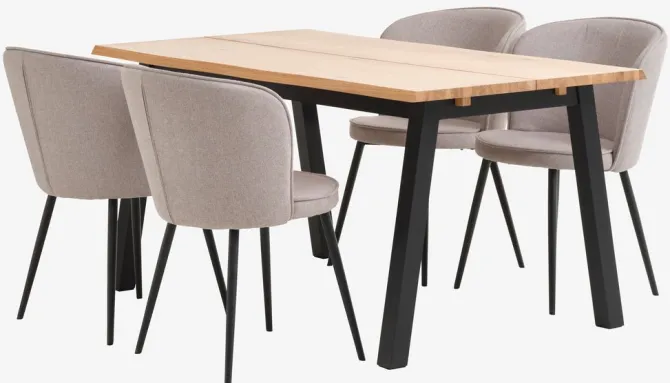 SKOVLUNDE L160 bord natur eg + 4 RISSKOV stole lysegrå