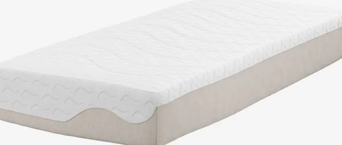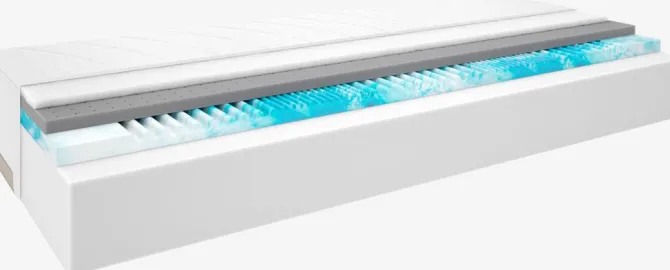 28 cm tyk skummadras 90×200 cm med 7 komfortzoner hvilket giver en unik, ergonomisk korrekt støtte. Kerne af 4 cm fleksibelt Comfort+ skum, 19 cm purskum og 3 cm trykaflastende AIR memory foam med fugtabsorberende bambus trækul. AIR memory foam former sig hurtigt og præcist efter kroppen, selv i et køligt sovemiljø. Betrækket er kraftig quiltet med uld. Uld er af natur antibakteriel, temperaturregulerende og fugtabsorberende. Betrækket indeholder TENCEL邃ør følelse.