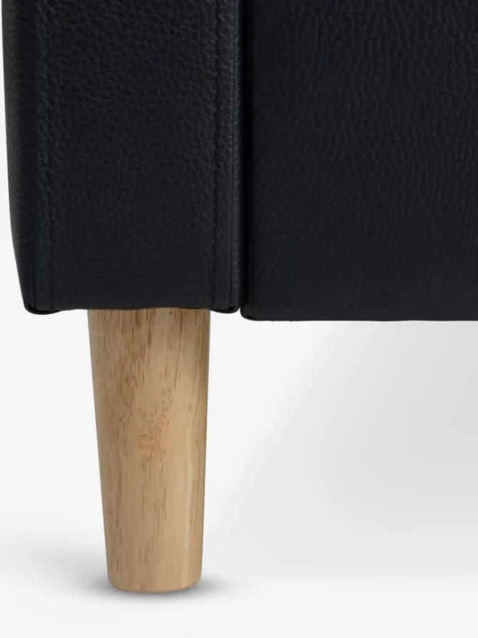 3-personers sofa i kunstlæder. Sæde- og ryghynder i skum. Ben i massivt træ. Kan spejlvendes. B216 x H78 x D83/149 cm