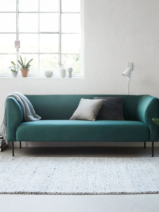 3-personers sofa i stof. Sæde- og ryghynder i skum. Ben i stål. B185 x H74 x D76 cm