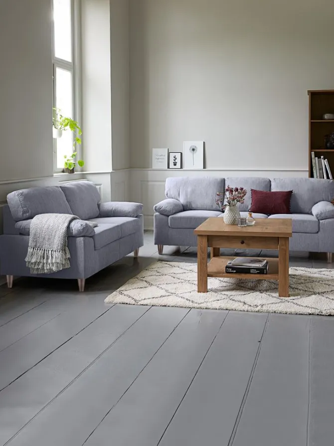 Stof. Sædehynde med pocket-fjedre og skumpolstring. Ryghynde i skum. Ben i massivt træ. 2-personers sofa: B154 x H85 x D84 cm. 3-personers sofa: B210 x H85 x D84 cm