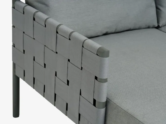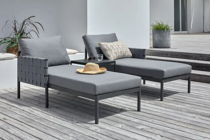 Solseng i aluminium og polypropylen. Inkl. luksushynder med slidstærkt, strukturvævet betræk. B136 x L156 x H63 cm