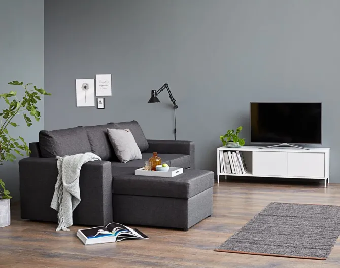 Sovesofa chaiselong MARSLEV mørkegråt stof