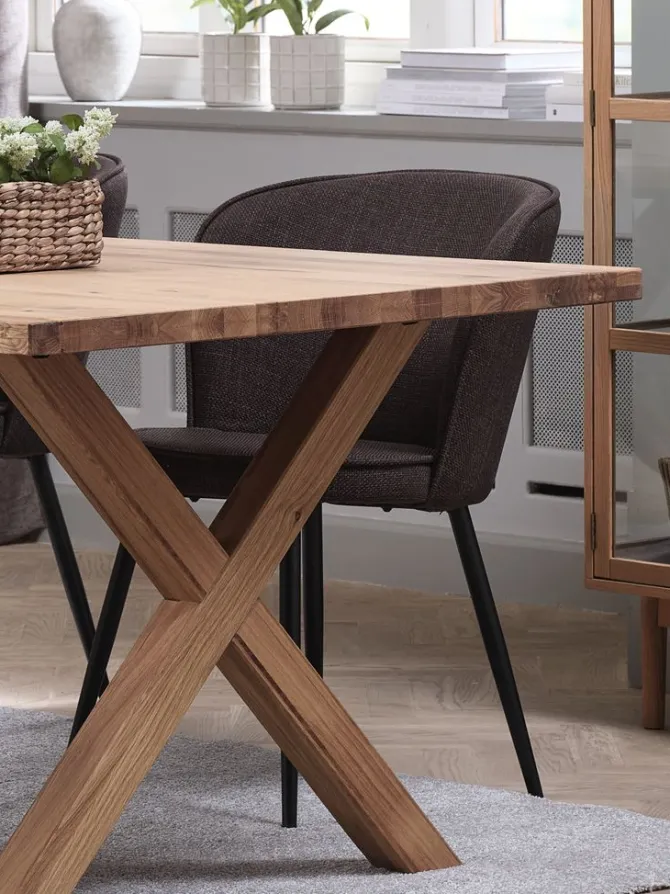Spisebord med mulighed for at tilføje tillægsplader. Bordplade i massiv eg og ben i egefiner. Træet er behandlet med olie for at beskytte det og fremhæve dets naturlige farve. Ved at tilføje tillægsplader kan du nemt forlænge bordet til enten 280 eller 330 cm for at rumme større sammenkomster. Tillægsplader kan købes separat. B100 x L230 x H75 cm