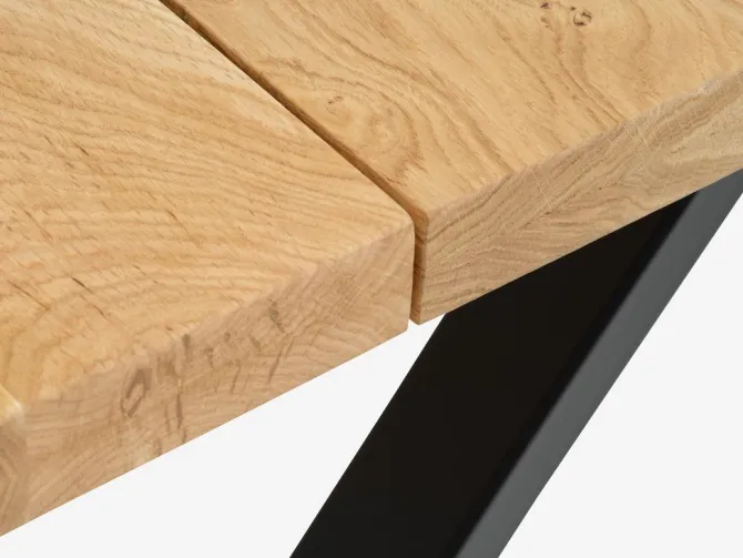 Spisebord med bordplade i massiv eg og sorte ben i stål. Træet er behandlet med olie for at beskytte det og fremhæve dets naturlige farve. Hvert bord har sit eget unikke udseende. B80 x L140 x H75 cm