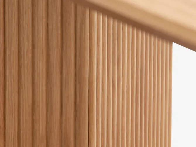 Spisebord med bordplade i egefiner og ben i massiv eg og egefiner. Træet er behandlet med klar lak for at forlænge holdbarheden. B100 x L200 x H75 cm