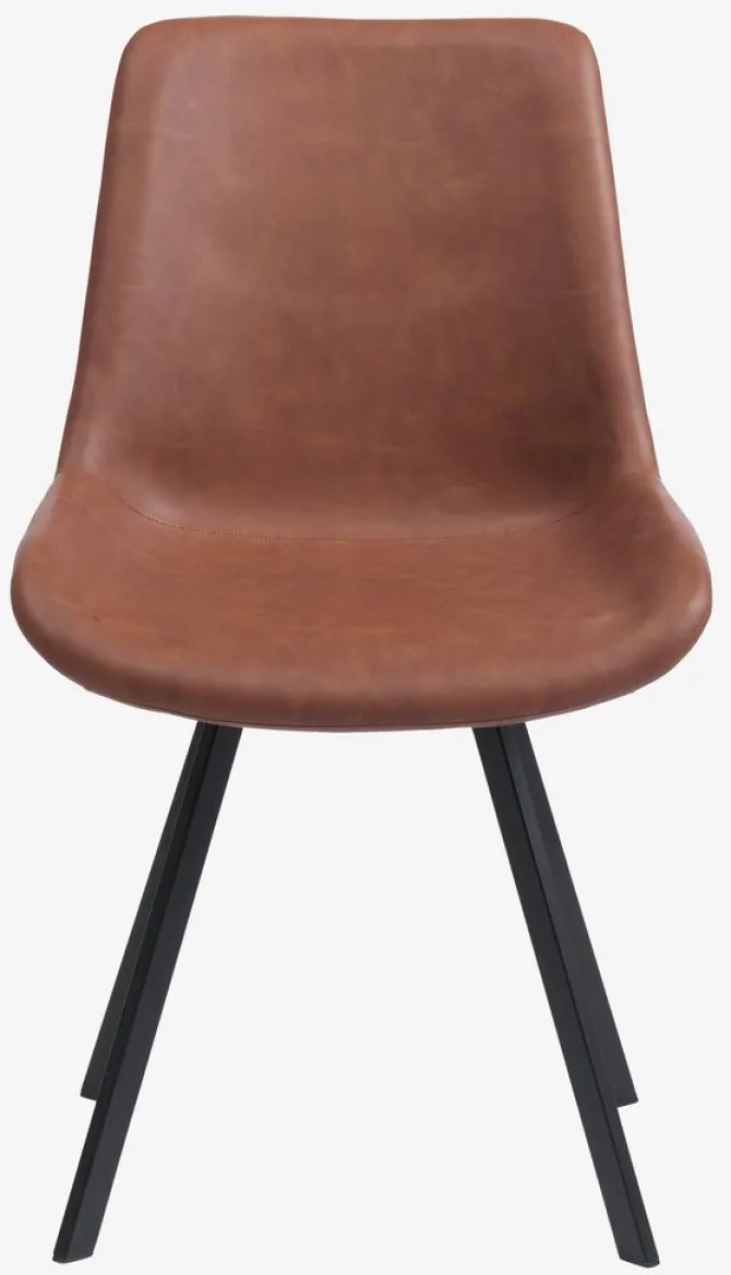 Spisebordsstol med polstret sæde og ryglæn i cognacfarvet kunstlæder. Sort drejefod i stål, som gør at stolen nemt kan dreje.