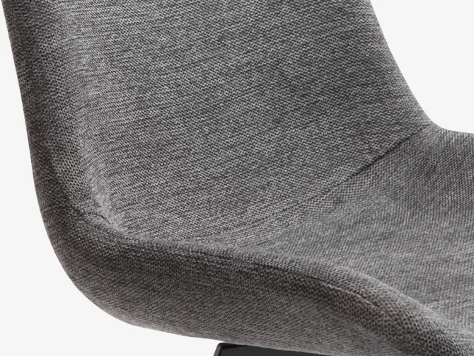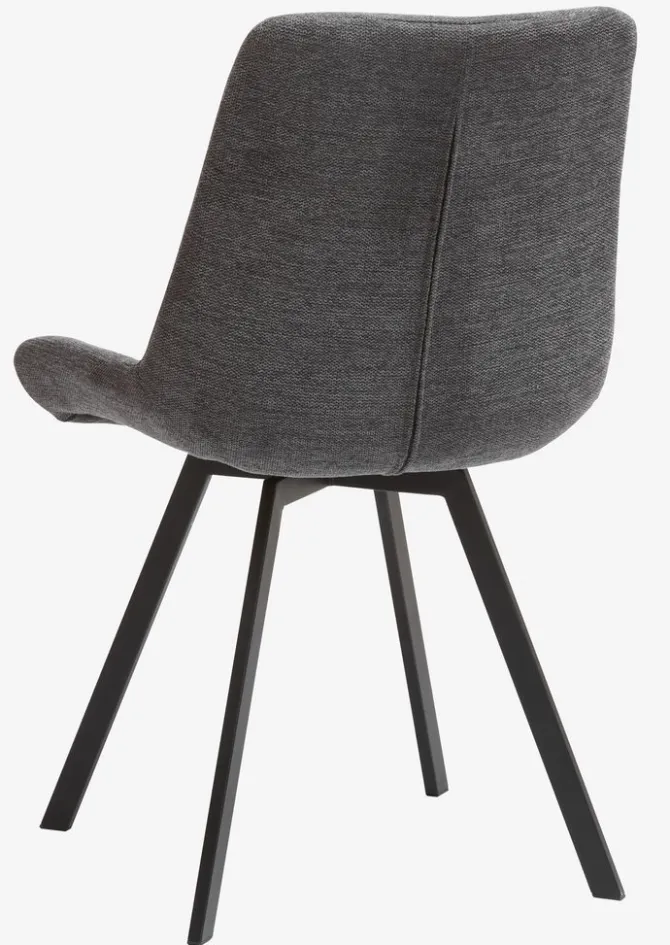Spisebordsstol med polstret sæde og ryglæn i gråt stof. Sort drejefod i stål, som gør at stolen nemt kan dreje.