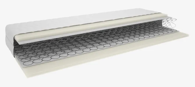 23 cm tyk springmadras 90×200 cm med bonell fjedre 130/m², polstret med purskum. Vaskbart betræk med let quilting.