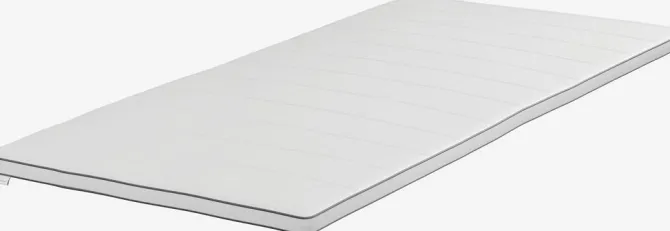 4 cm tyk topmadras 90×200 cm med kerne af purskum. Vaskbart strækbetræk med let quiltning.