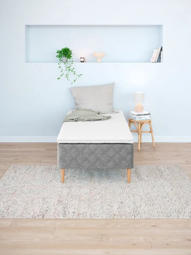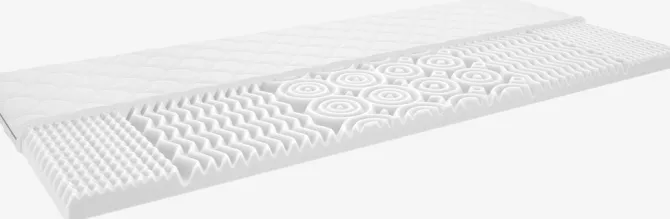 7 cm tyk topmadras 90×200 cm med kerne af trykaflastende memory foam, der former sig præcist efter kroppen. Madrassen er inddelt i 5 komfortzoner hvilket giver en præcis, optimal støtte. Vaskbart betræk med kraftig quiltning.