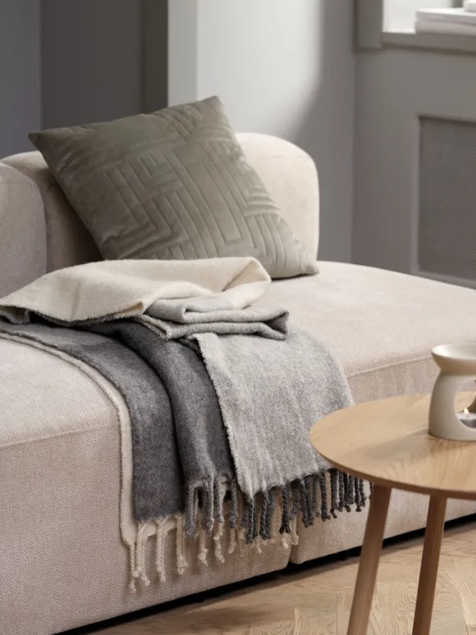 Uldplaid LUNDKARSE 130×170 grå/beige