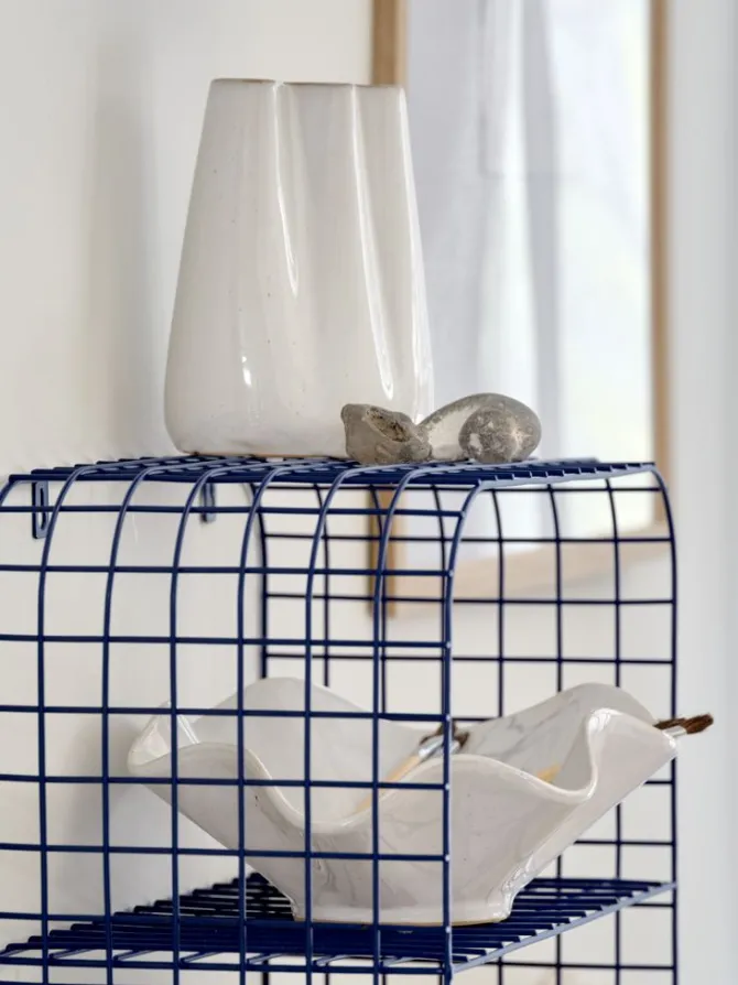 Hvid vase i stentøj med en elegant og moderne form. Vasen har en glat overflade med subtile detaljer, der giver den et sofistikeret udtryk. Perfekt som et dekorativt element i hjemmet eller til at fremvise dine yndlingsblomster. B13 x L8 x H17 cm
