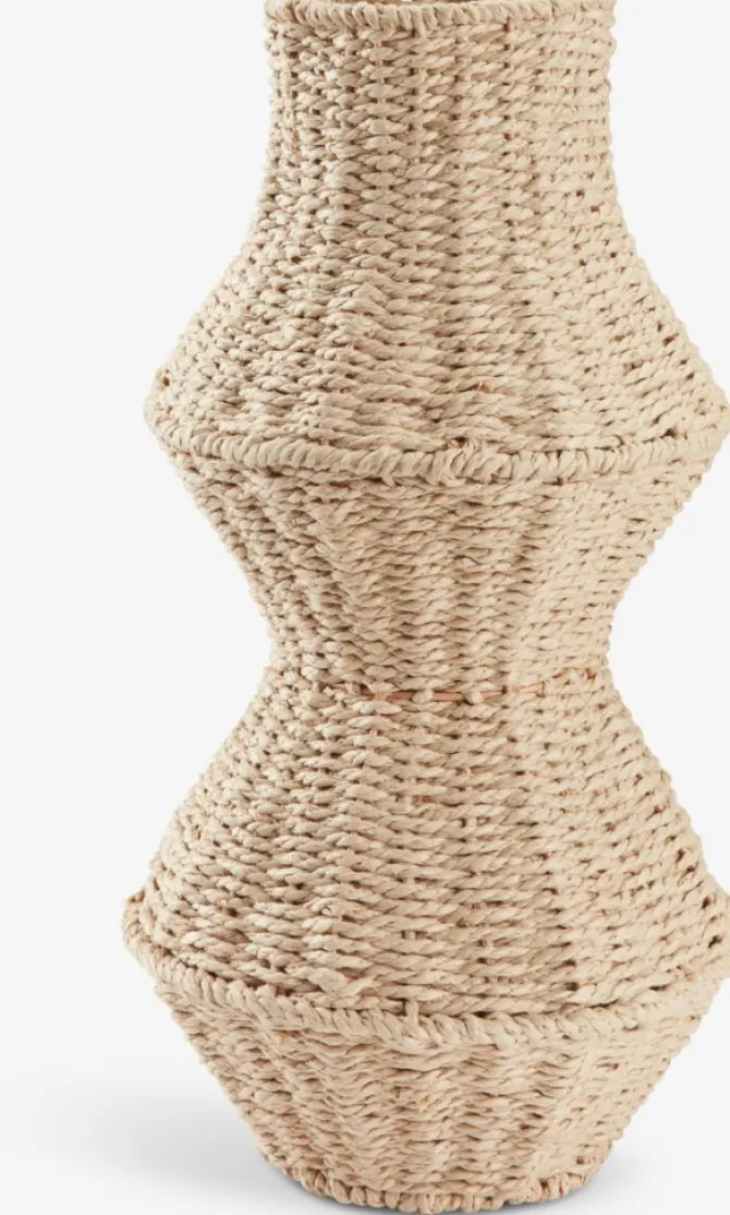 Høj vase lavet af papirstrå med et unikt geometrisk design. Vævningen og den naturlige farve tilføjer en rustik charme til ethvert rum. Ø24 x H47 cm