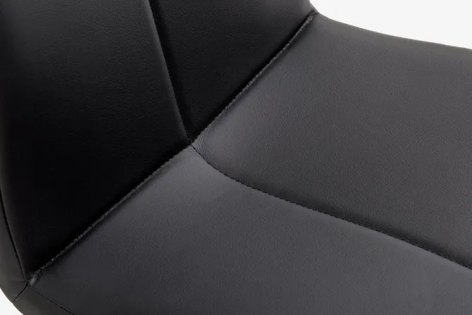 Bord: Kunstfiner og stål. B80 x L120 x H75 cm. Stol: Kunstlæder og krom.
