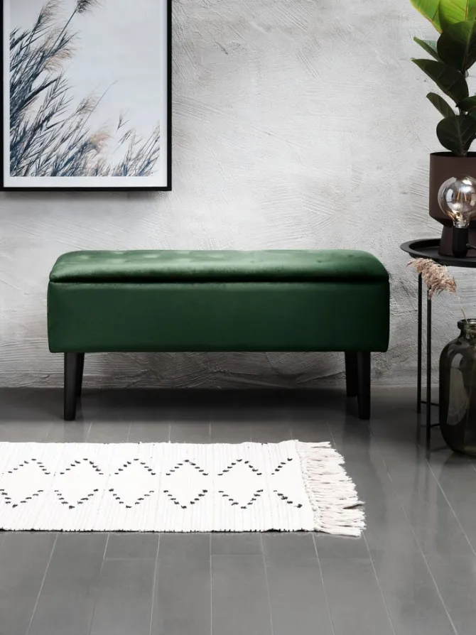 Bænk BADSTED m/opbevaringsplads grøn velour