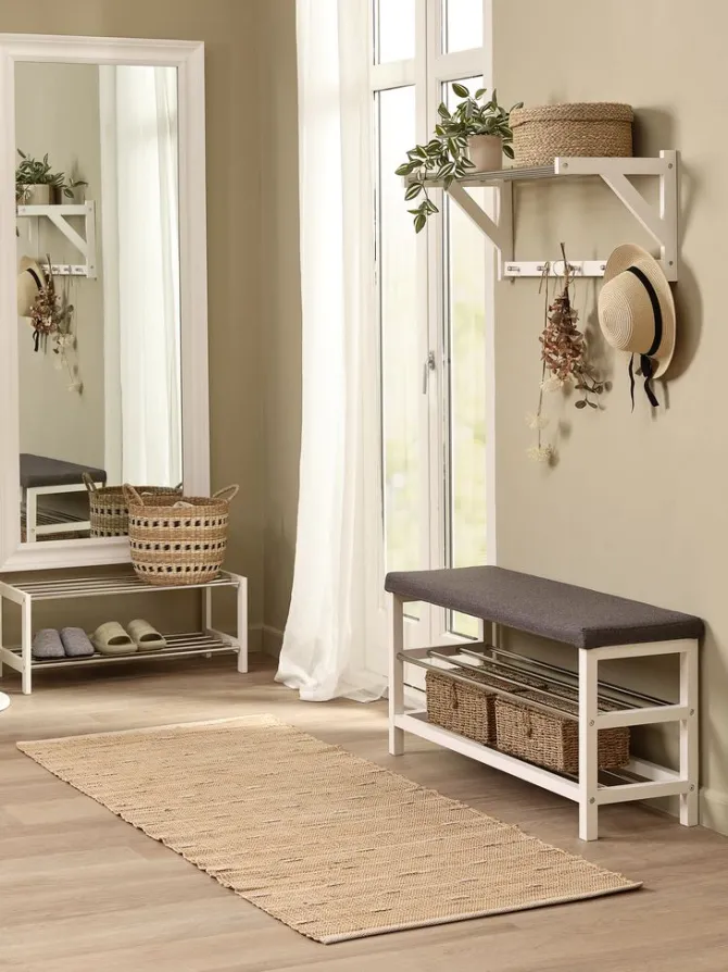 Bænk EGESKOV m/skohylder stål/hvid