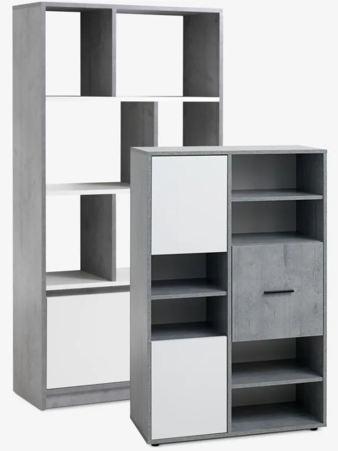 Bogreol BILLUND 1 skuffe 3 hylder beton/hvid