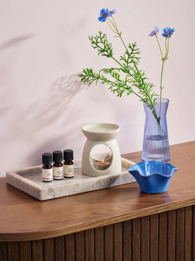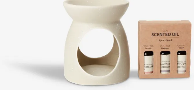 Sæt med tre duftolier i brune glasflasker. Sættet indeholder dufte af vaniljebær, frisk blomst og lavendel. Ideel til at skabe en behagelig og afslappende atmosfære i dit hjem. 10 ml