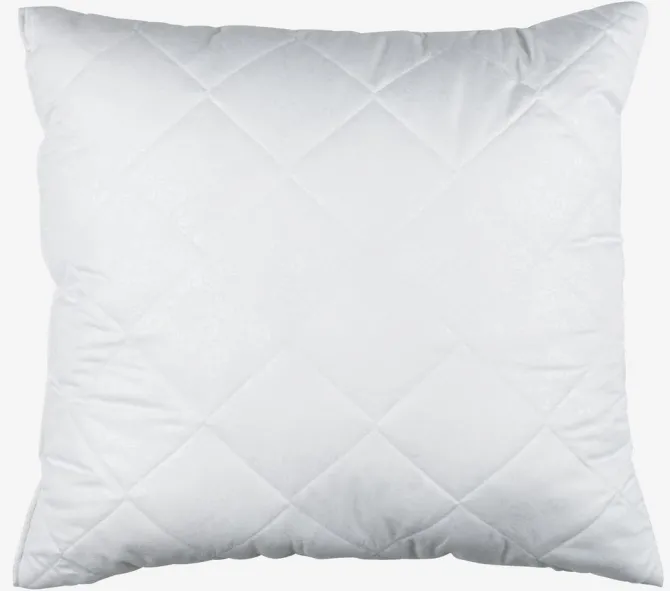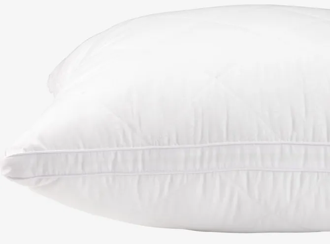 Fiberpude 60×63/70 cm med boxkant, som giver puden mulighed for at genvinde sin form og give jævn støtte. Let, luftigt fyld af silikoniserede, spiralformede hulfibre, 1300 g. Blødt bolster i 100% mikrofiber. Quiltet med hulfibre. Vask 60°C.