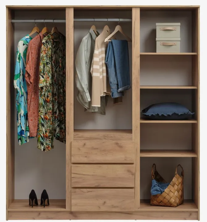 Garderobeskab LIMFJORDEN 180×200 kombi naturlig egefarve