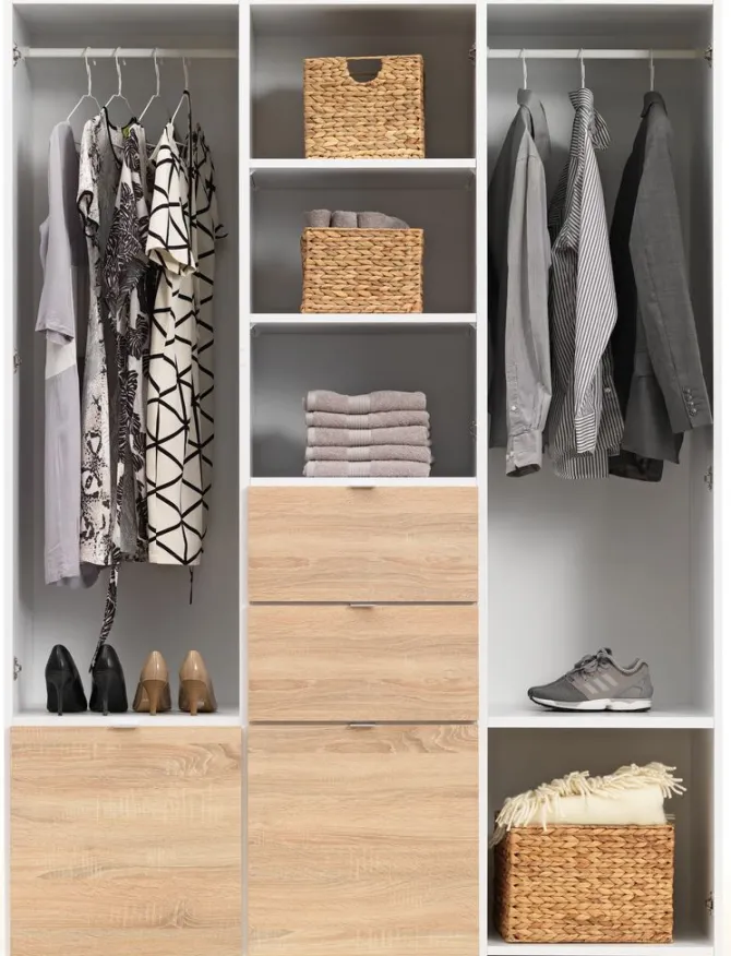 Garderobeskab NAUTRUP 149×200 3 låger egefarve/hvid