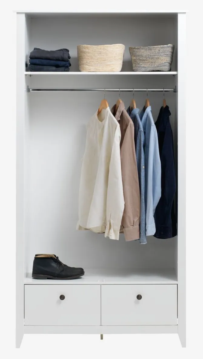 Garderobeskab NORDBY 105×200 2 låger 2 skuffer hvid